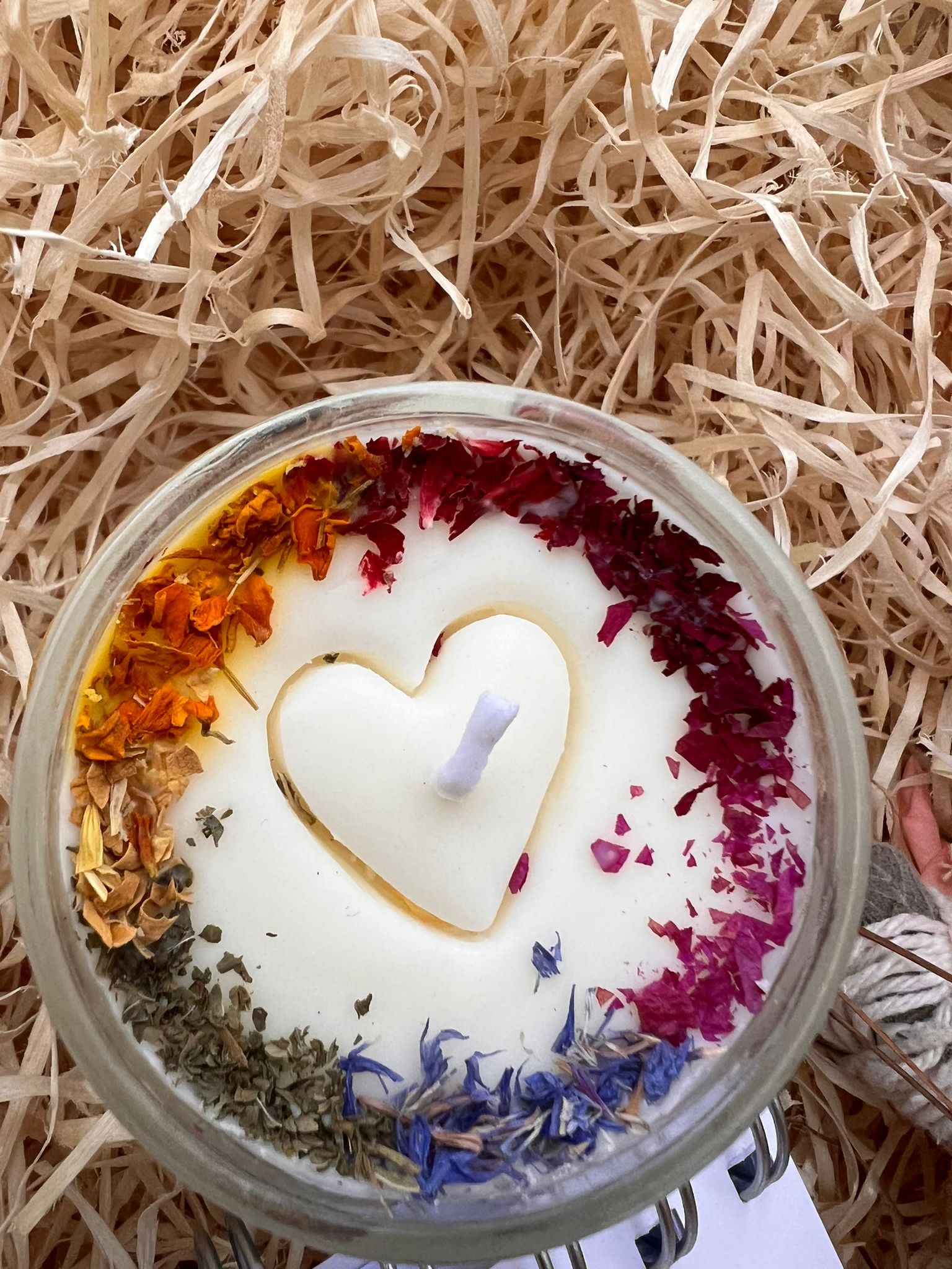 Una vela de soja con lavanda de Trece Lunas, elemento fuego